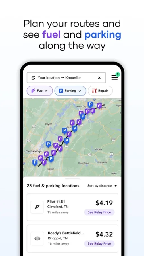 GET FUEL DISCOUNTS: Instantly use Relay at truck stops to purchase discounted fuel along your route. Relay's innovative payment solution ensures complete pricing transparency and requires no lengthy activations or card applications.