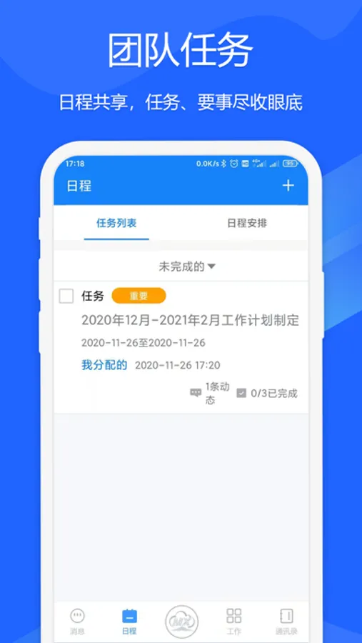 【日程】展现与时间有关的所有事项,提供会议等事项安排的提醒