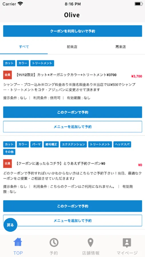 お得なクーポンが配信されます。ネット予約時にクーポン利用での予約も可能なので来店時もスムーズに施術頂けます。
