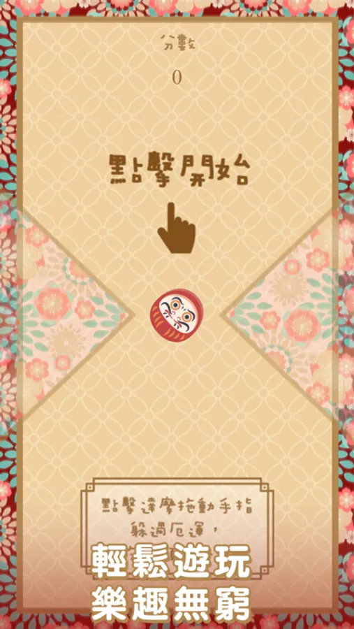 在螢幕上點擊達摩拖動手指,躲過上方掉落的厄運