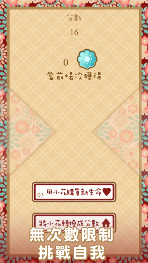 每次復活需要的小花依次倍增,當無法購買可將剩下小花轉換為當前遊戲分數