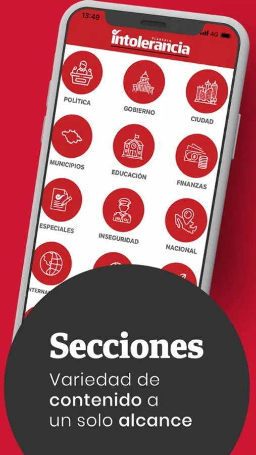 ◆ Pestaña SECCIONES: Accede a las secciones de Política, Ciudad, Inseguridad, Municipios, Toros, Nacional, Gobierno, Educación, Salud, Deportes, Finanzas, Espectáculos, Cultura e Internacional, fácilmente gracias a nuestros identificadores gráficos.