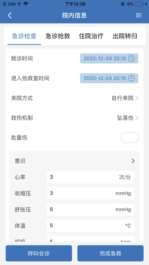 该APP用于记录创伤患者的早期救治关键时间点和关键数据,包含了基本信息院内信息、院前信息、推送患者、交接单填写等模块,实现院前信息及时传输给院内,方便了各个科室信息的及时传递,快速、准确诊断,缩短急救时间。同时实现上下级单位的信息沟通和患者转诊。