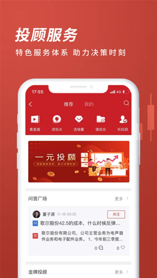⑤投顾服务:专家投顾在线互动,特色服务体系,助力决策时刻