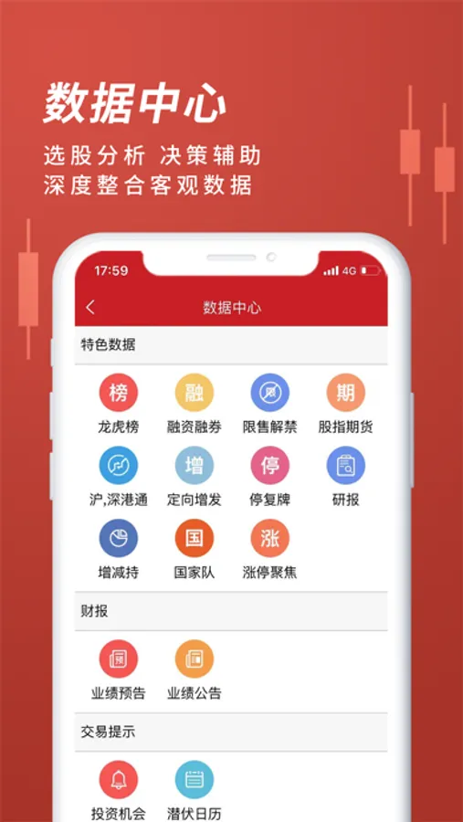 ⑥数据中心:涨停聚焦、龙虎榜、业绩预告、投资机会、国家队、增减持,从选股分析到交易辅助,为您的每一次投资保驾护航