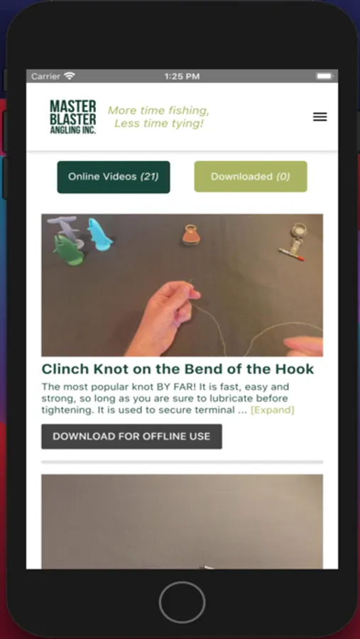 Fishing knot tying video tutorials teach you how to tie 20+ knots. Download the videos for offline use – for when at the fishing hole, away from wifi and internet. Videos using the Knot Kneedle® fishing knot tying tool.