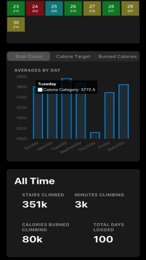 Ascend is a stair climber's tracking app. It will help you track your climbs and lose weight. Add daily climbing and weight stats. Get data visualizations by week and month to help understand your training and weight loss.