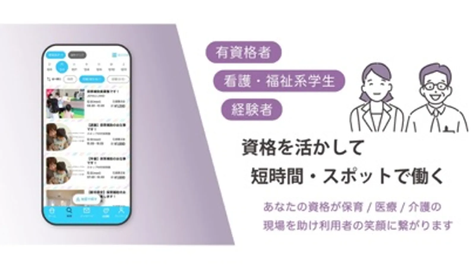 「来週は保育園で働こう!」「明後日は介護施設で4時間働こう!」「週1回の遅番勤務希望!」と、ご自身が望むお仕事とライフスタイルを実現してください。