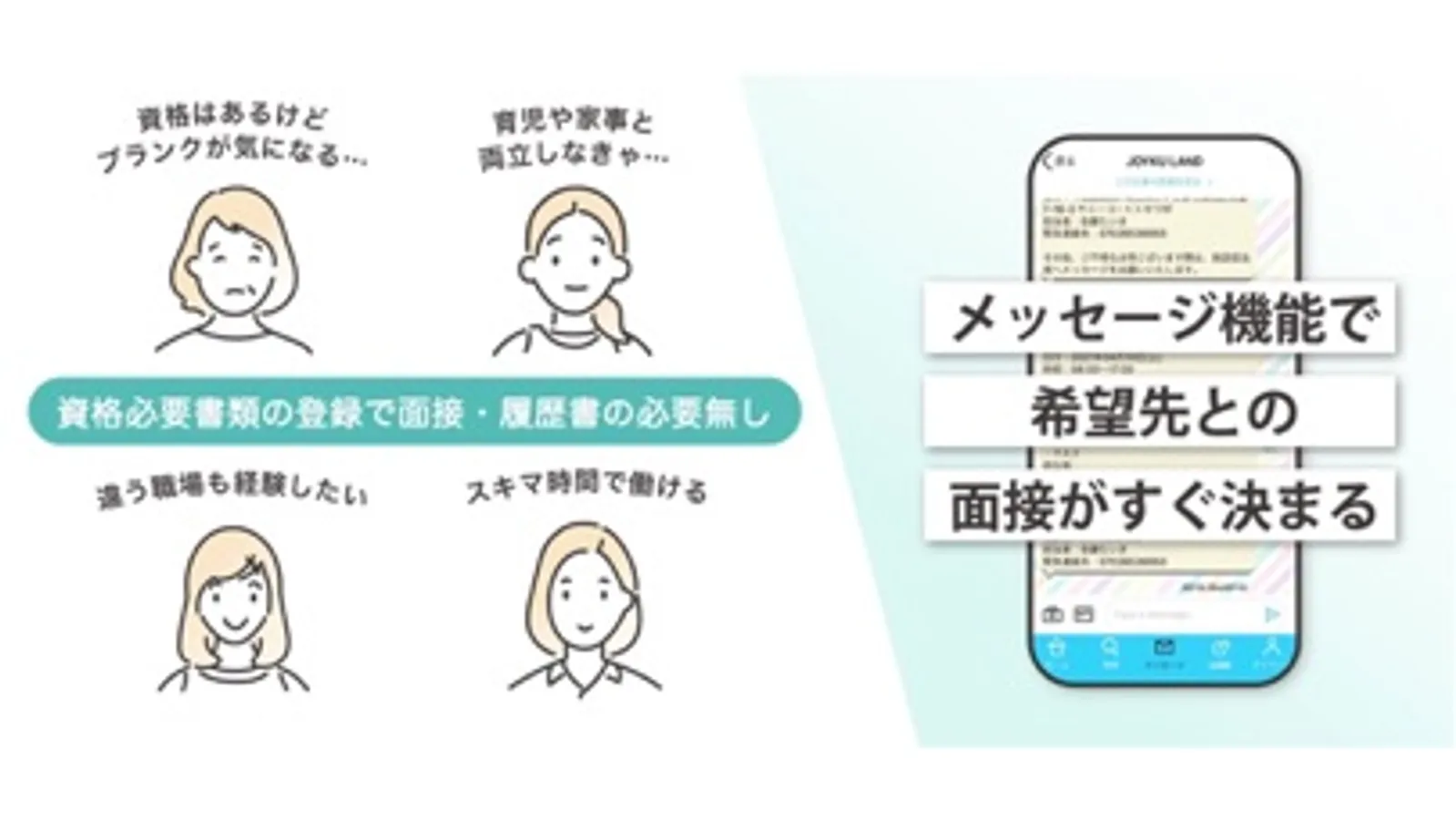 ジョイクは、あなたの国家資格や教育スキルで保育園や介護施設、医療施設などの「人手不足」を助け、社会貢献+お給料を稼ぐことが実現できるお仕事セレクトアプリです。