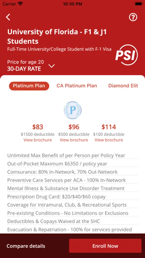PSI App allows students to get cost estimates on their preferred insurance plan without registration. Current PSI customers can securely access their PSI account to view their plan summary and get information about what's covered. More importantly, PSI customers can download the following insurance documents: