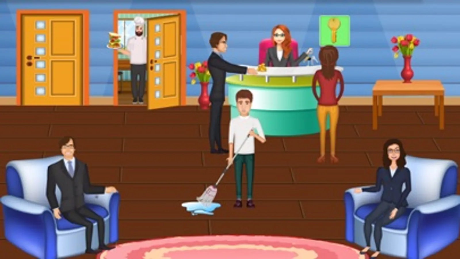 - Realistic hotel environment with multiple room services