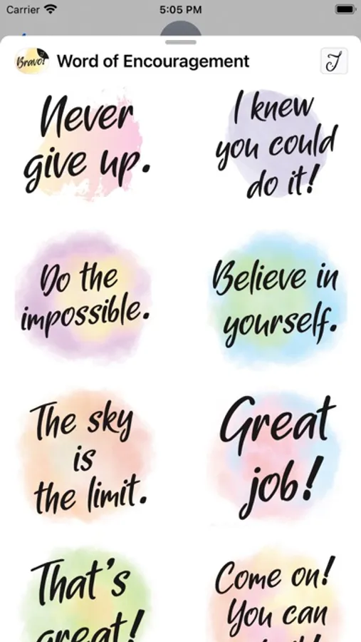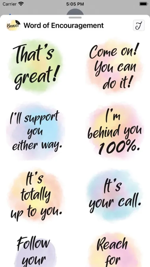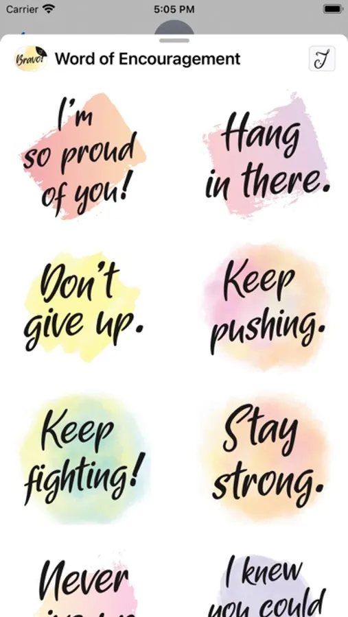 Support your partner, friends & family with these encouraging words iMessage stickers . Lettering with watercolour background stickers ready to use, inspire and motivate.