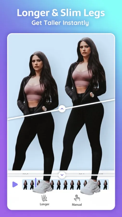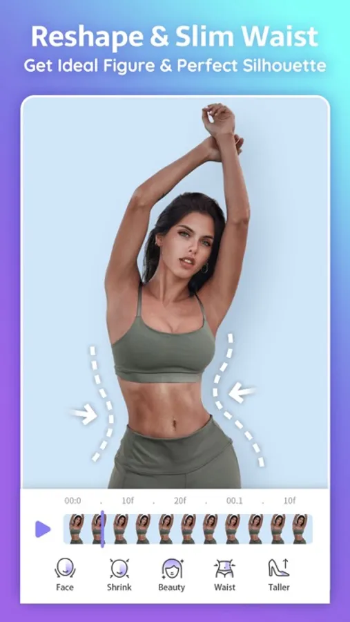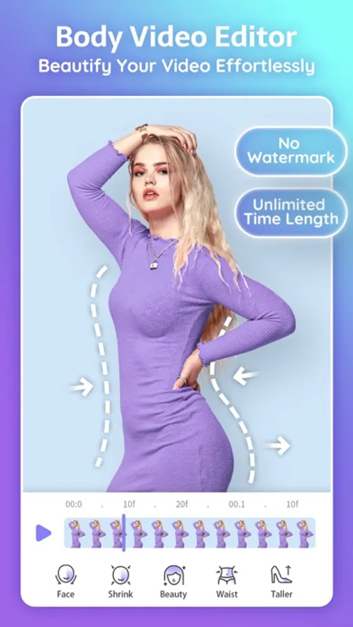 -Make your body slimmer and help you fix body and smooth body skin in videos. Excellent body edit app and wonderful portrait video editor for you to tune.