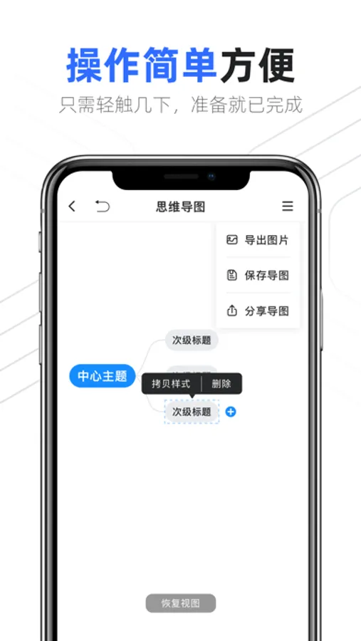 无需花时间学习即可轻松制作出精美的导图. 你可以直接在线创建, 保存并分享你的思路, 提供多种模板。