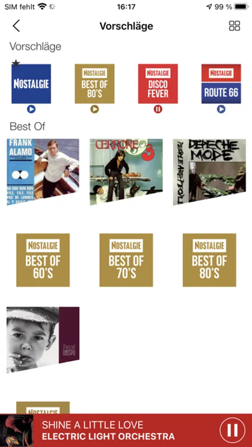 Wer Lust auf die größten Songs der 80er Jahre hat - perfekt kombiniert mit denen aus den 70ern und den 90ern - ist bei NOSTALGIE genau richtig. Ob Blues, Rock oder Disco Fever mit unseren Streams ist ein Ohrwurm garantiert! NOSTALGIE ist die Nr.1 Musik-App für "Die größten Songs"!