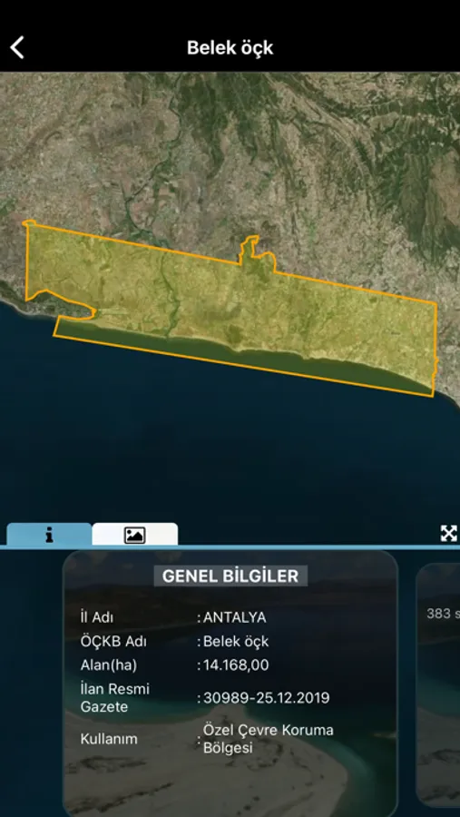 • Kullanıcı konumuna yakın olan Tabiat varlıkları, Doğal Sit Alanları ve Özel Çevre Koruma Bölgeleri görüntüler.