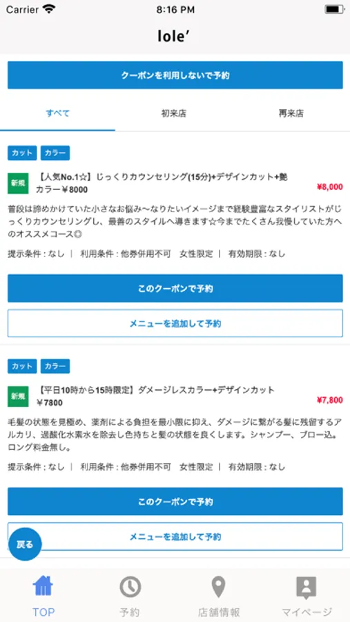 お得なクーポンが配信されます。ネット予約時にクーポン利用での予約も可能なので来店時もスムーズに施術頂けます。