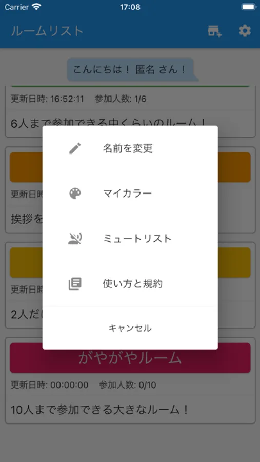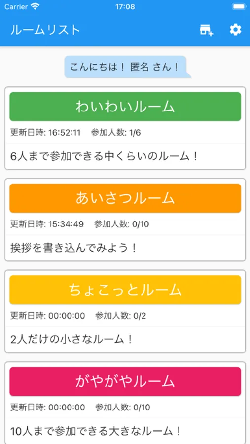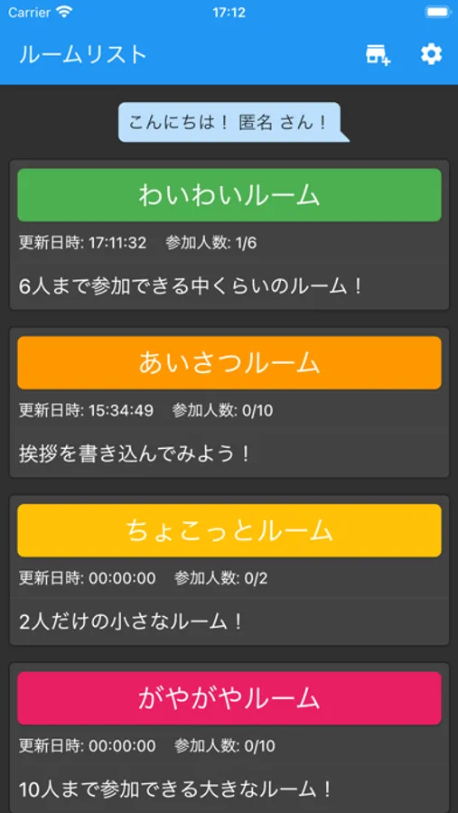 ルームは更新日時順にリストに表示されるため、作成後は発言をしてみると他のユーザーの目に触れる機会が多くなります。