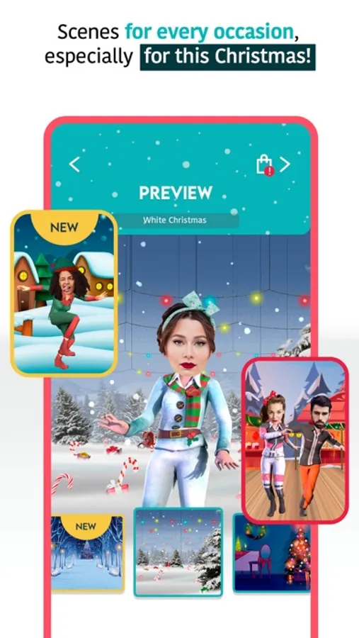 Dance in front of Christmas ornaments, under Christmas trees or next to gingerbread men, a snowman or reindeer. Become a star of your own video. Put your photos on the faces of dancing elves in festive costumes, Santa Claus and reindeer. Choose a dance you like and create a unique video that you can send to anyone via social media. Select the background where you would like to dance and wait for the surprise song or carol that comes with it. From elves, reindeer, Santa Claus to snow man, find a funny theme that suits your celebration. Discover the best themes to celebrate the New Year and Christmas.