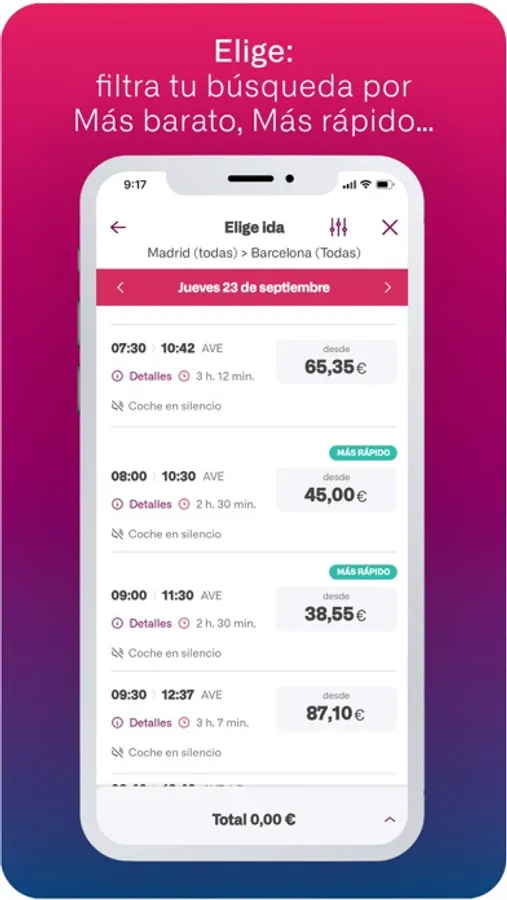 Aplicación oficial de Renfe para la compra y gestión de tus viajes en trenes Ave, Larga Distancia, Media Distancia y Avant.