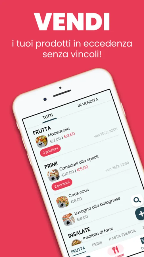 - Scegliere personalmente quali prodotti in eccedenza caricare o quali rendere prenotabili giorno per giorno;
