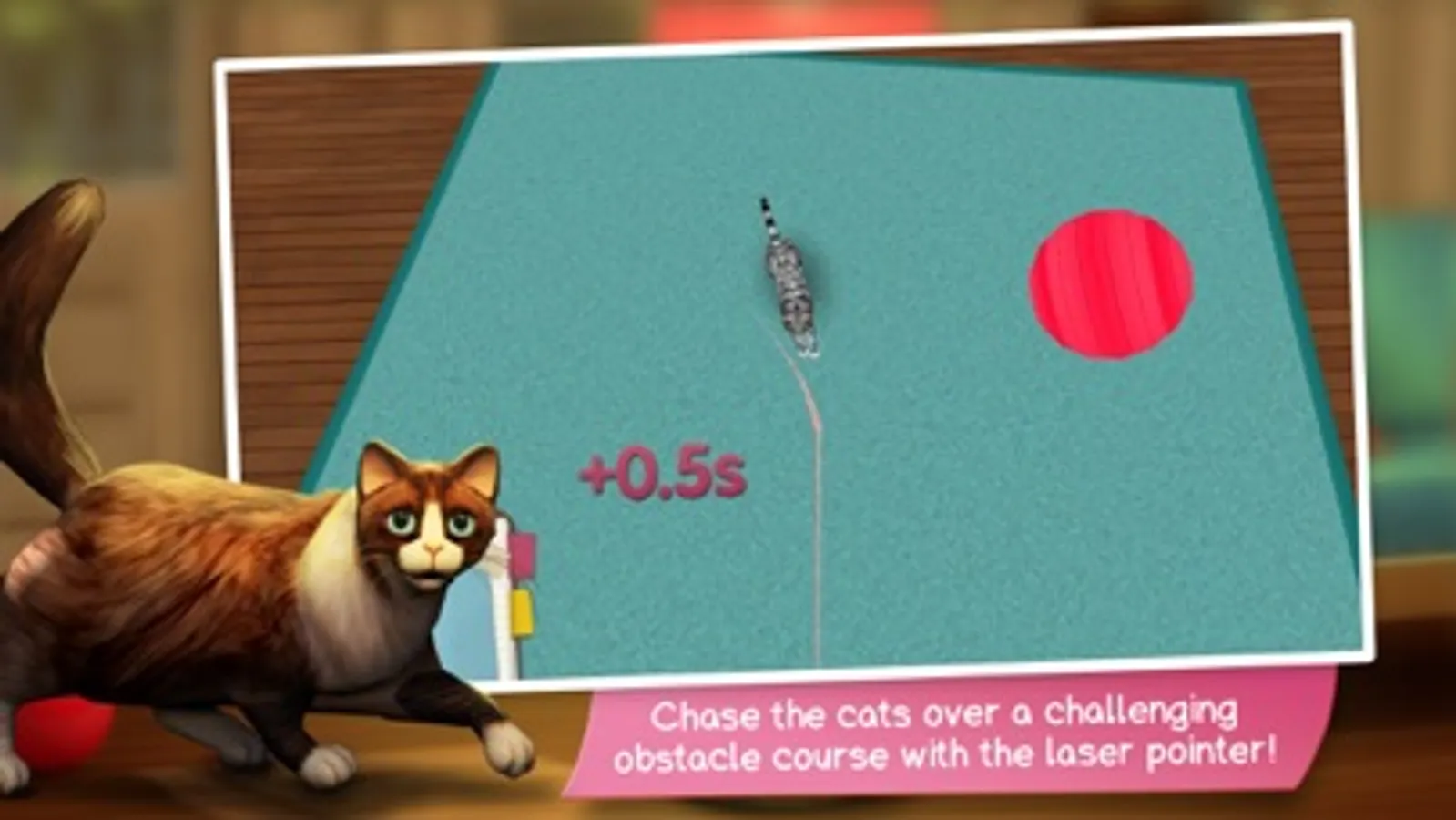 There are various items waiting for you in the playroom: you can use the laser pointer to chase the cats around the playroom – breaking a vase or two along the way!