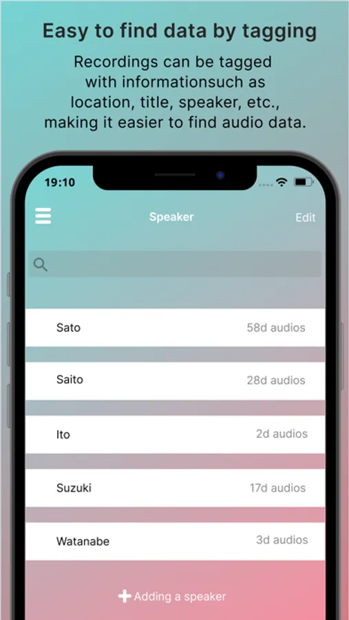 Recordings can be tagged with information such as location, title, speaker, etc., making it easier to find audio data.