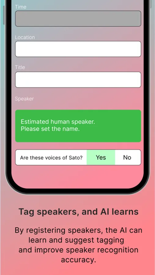 By registering the speaker, AI can learn and suggest tagging and improve the accuracy of speaker recognition.