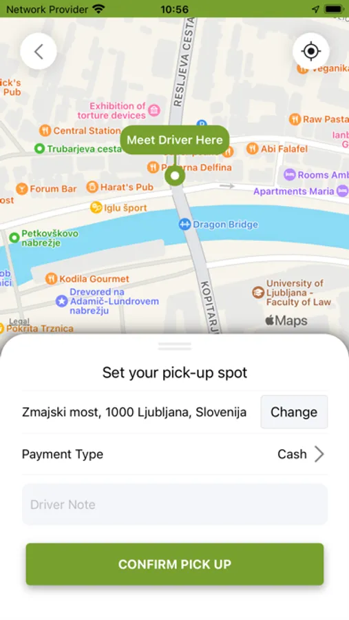 • track driver’s arrival on the map, the app uses your location so your driver knows where to pick you up