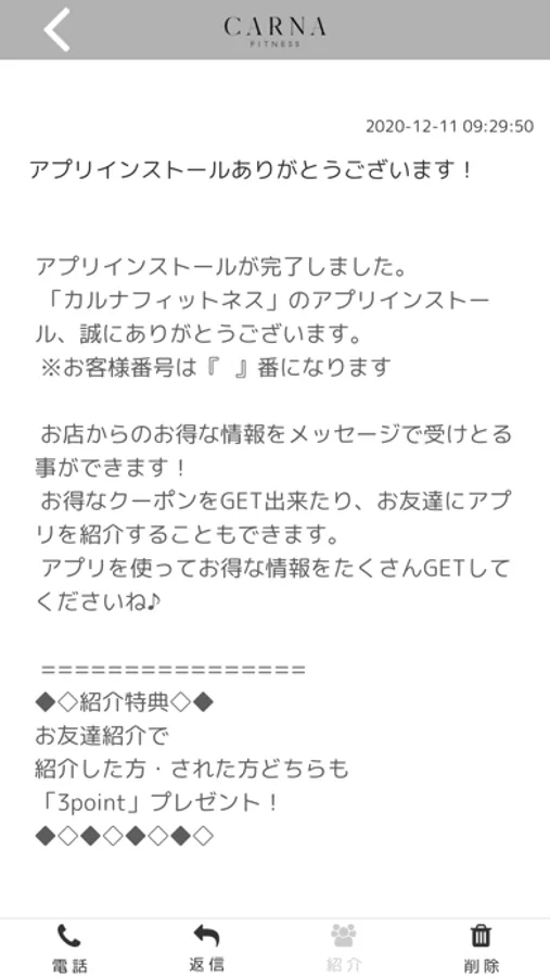 CARNAのアプリをSNSを通じてお友達に紹介する事ができます。