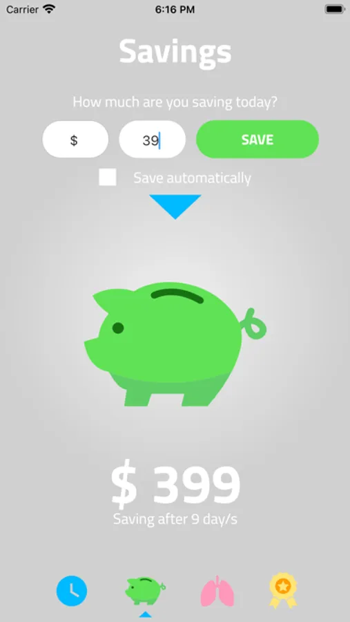 As a non-smoker you can save a lot of money. This App shows you how much money you are saving every day. This allows you to reschedule what you will spend your money on.