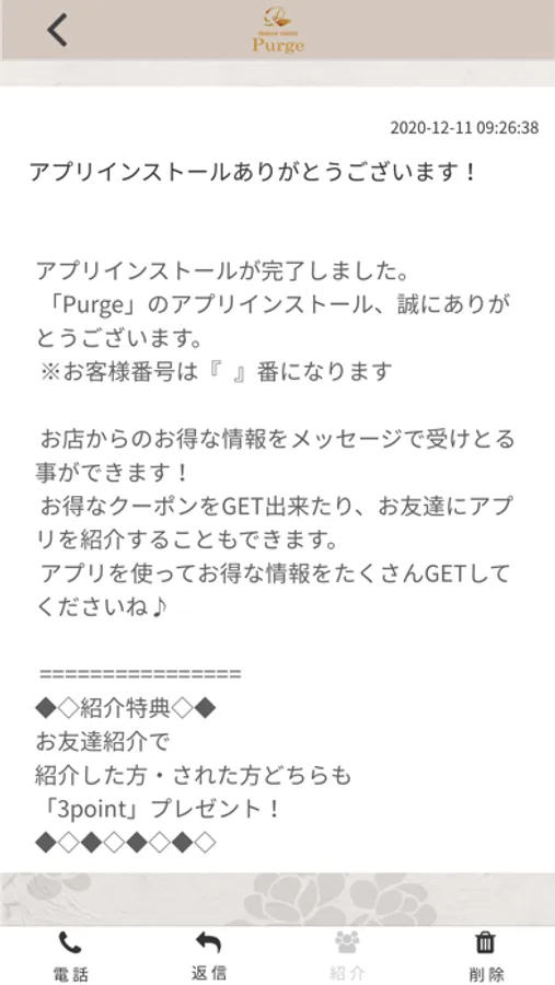 PurgeのアプリをSNSを通じてお友達に紹介する事ができます。