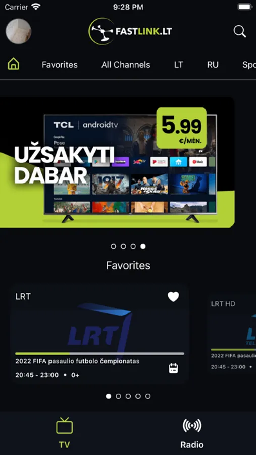 Fastlink Jums siūlo virš 100 TV programų ir išmaniąją televiziją 4K ULTRA HD formatu.