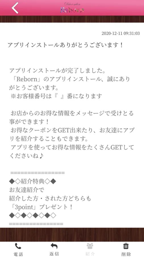 RebornのアプリをSNSを通じてお友達に紹介する事ができます。