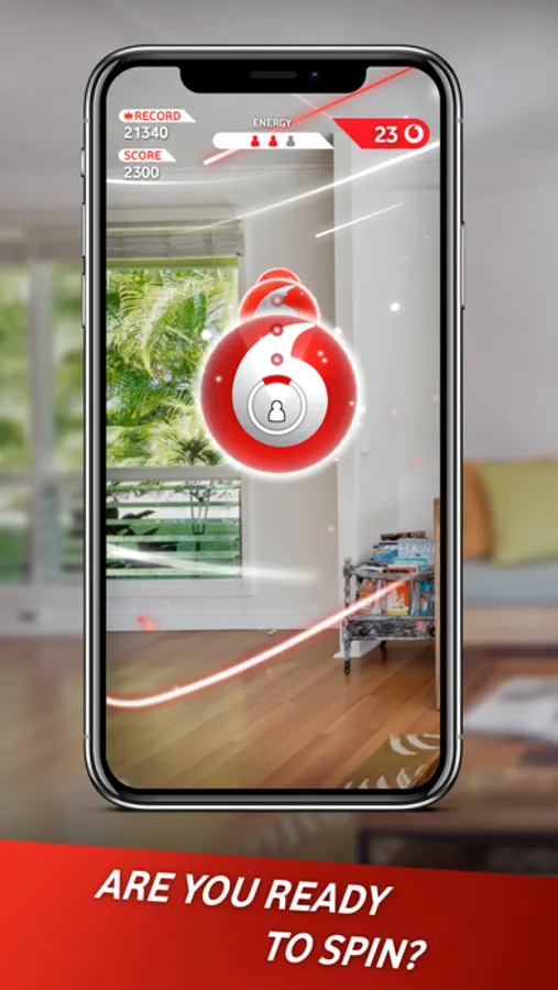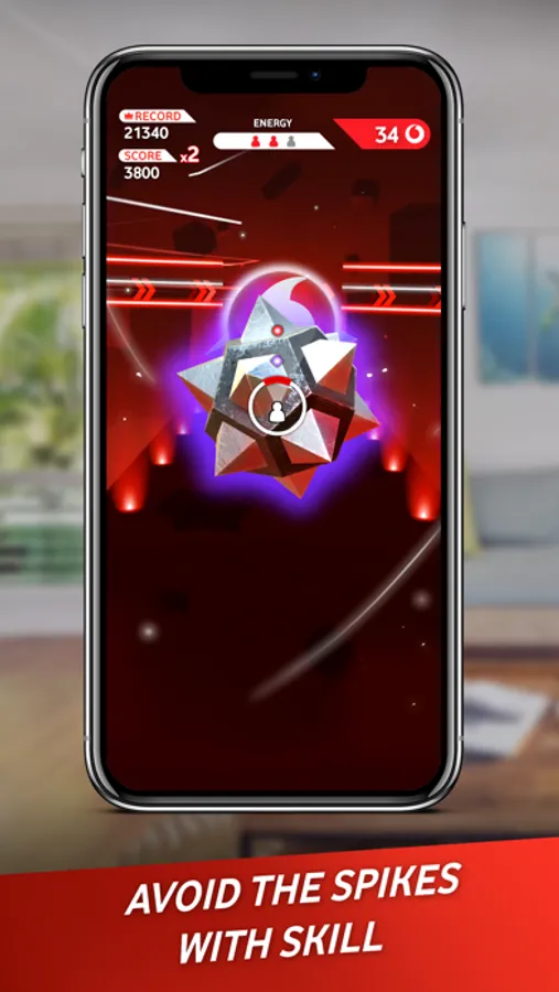 Spin around and collect all the Vodafone 5G spheres but be careful, protect yourself from the metal spikes that come directly at you.