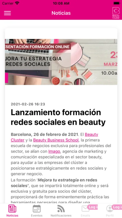 La App del Beauty Cluster es un canal directo de información del Clúster a sus socios para estar al día de toda la actualidad en noticias y eventos de su sector, así como ofrecer un repositorio de las comunicaciones recibidas en función de los intereses de los socios respecto del sector de la belleza.