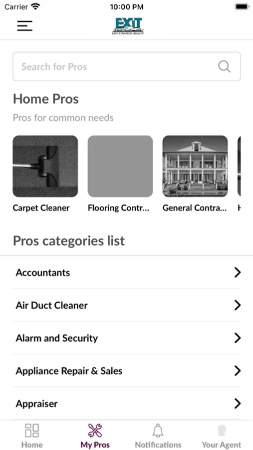 The Exit Strategy Realty App allows all Exit Strategy Realty clients to find the top rated home pros like cleaners, painters etc. recommended by your Exit Strategy Realty agent. You can also get timely reminders for your home such as changing your filter or checking your HVAC unit so that you don't have to remember those minute details to manage your home. Finally you can also get real time messages from your agent on all things happening in your neighbourhood