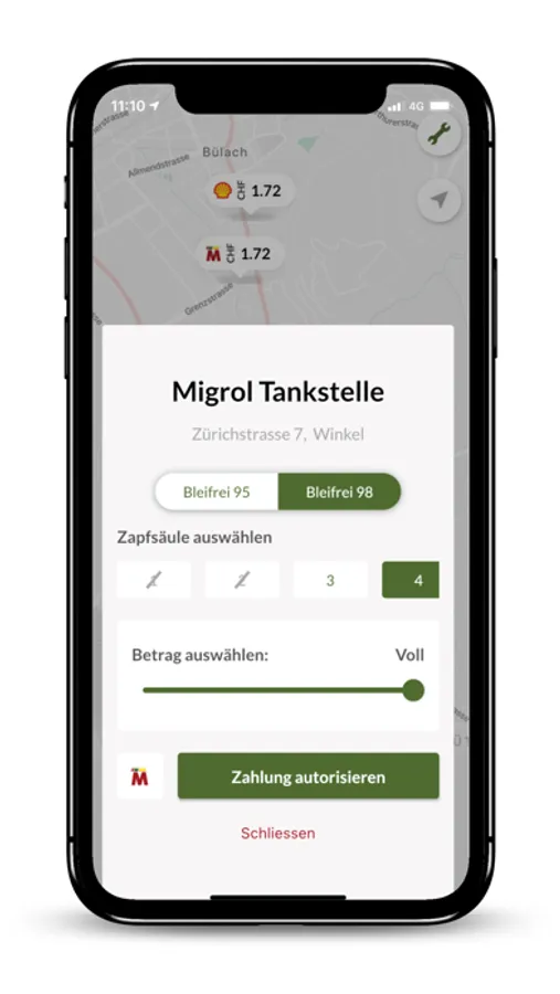 Fahren Sie zu einer freien Zapfsäule an einer der rund 310 Tankstellen der Migrol AG und schalten Sie die Zapfsäule mit der Migrolcard App frei. Nachdem Sie Ihren Tank gefüllt haben, verläuft die Abrechnung automatisch auf der App. Sie können losfahren, ohne im Shop anzustehen oder den Kassenautomaten zu bedienen.