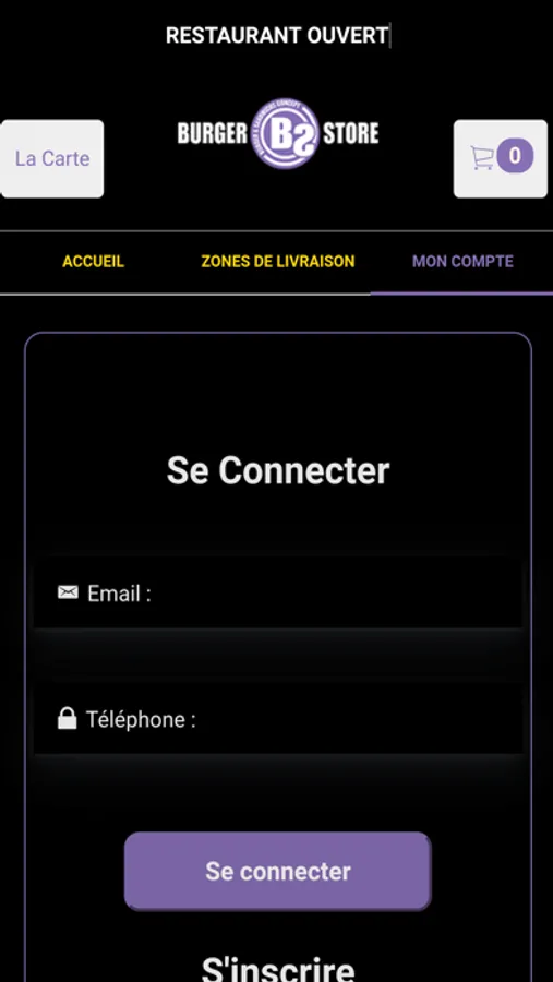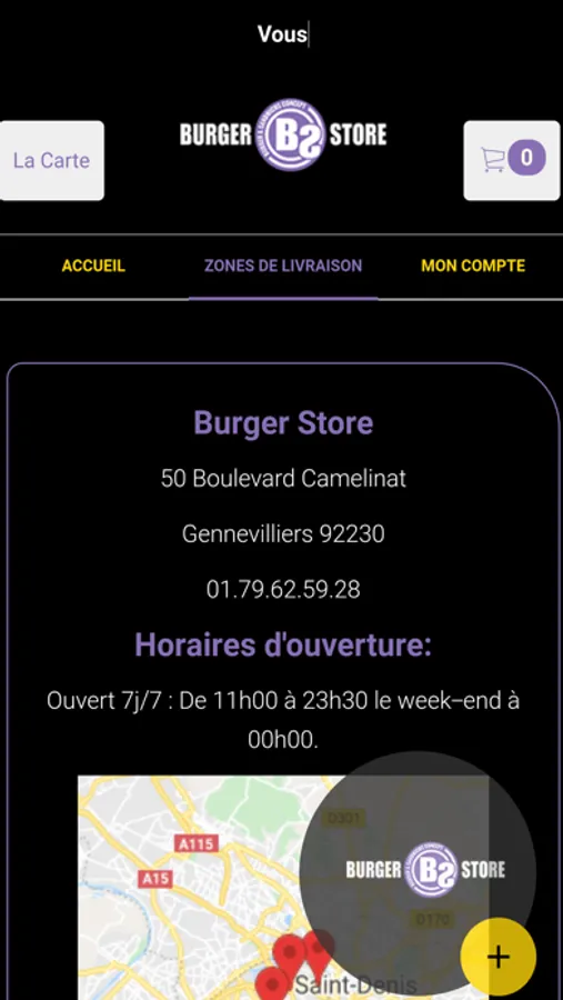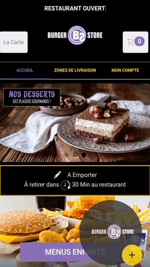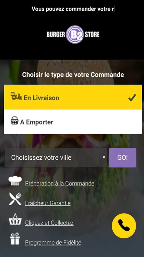 L'application BURGER STORE vous permet de commander en ligne ou par téléphone via votre application.