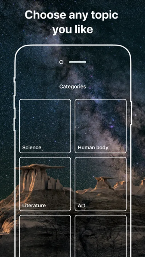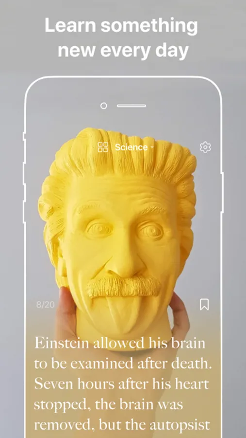 To make reading facts your new habit, we will send you notifications at the time of your choosing. Moreover, our interface is created to make your learning process pleasant and engaging. You will be satisfied with the app design and the quality of information.