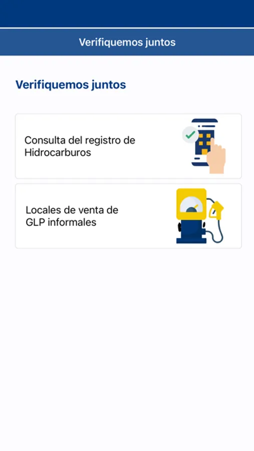Verifica con Osinergmin es una app el cual permite que las personas o instituciones puedan verificar al instante si los vehículos que transportan o distribuyen combustibles cuentan con el Registro de Hidrocarburos (RH) que otorga la institución. En caso que el usuario verifique que el vehículo no cuenta con el RH, puede reportarlo ante Osinergmin para la supervisión inmediata.