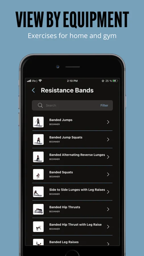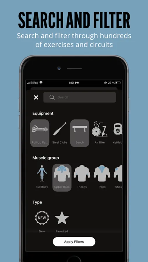Workout app offering cardio, yoga, weightlifting, barbell, resistance bands, dumbbells, kettlebells, medicine balls, slam ball, stability ball, steel clubs, steel mace, trap bar, AND MORE.