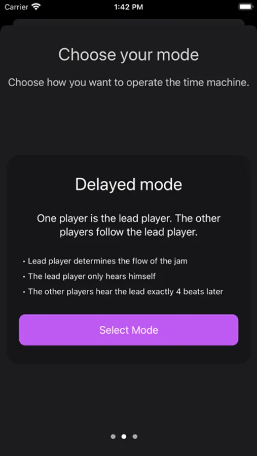 - Delayed mode: one player is the lead. The lead plays 4 beats in the future. The other players follow the lad.
