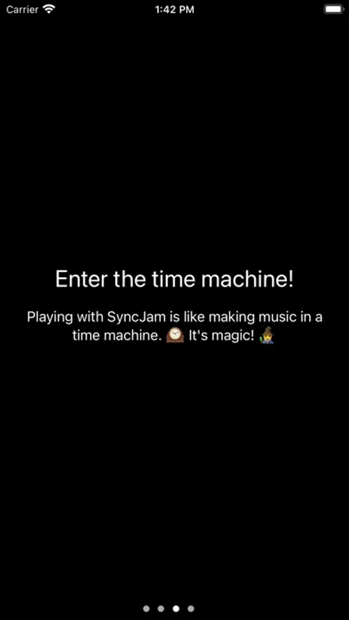 Playing with SyncJam is like making music inside a time machine. Normally, making music with friends on the internet is very difficult, because you need extremely fast internet for that (latency of less than 15ms). But SyncJam does something smart: we have worked around the latency issue by doing something revolutionary: time traveling. Yes, you read that right. SyncJam let's you plays with time. How does it work? It's very simple. Just start by choosing a time travelling mode: