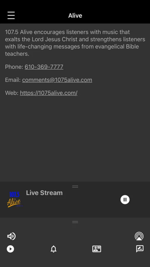 107.5 Alive encourages with music that exalts the Lord Jesus Christ, strengthens with life-changing Bible teaching, and inspires with messages for the entire family. We play artists that have inspired for decades and those just beginning to do so. We provide evangelical Bible-teachers who unapologetically teach God’s Word and help us apply its teaching to our lives. We look for those that entertain while encouraging us to live life to please the Lord Jesus Christ.