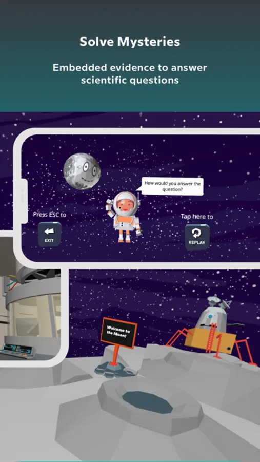 Why are the bats disappearing from this forest? What did this desert environment look like millions of years ago? Use your observations in each world to answer scientific mysteries such as these!