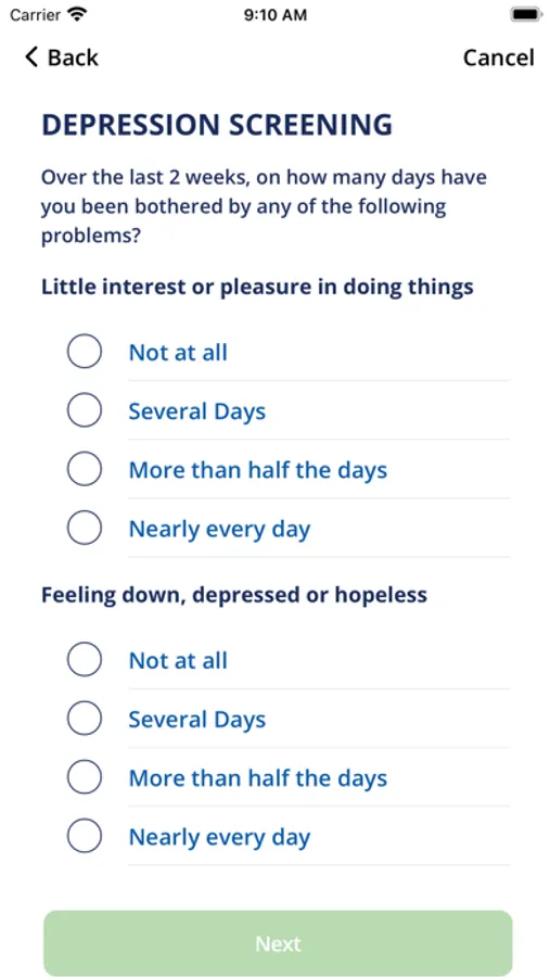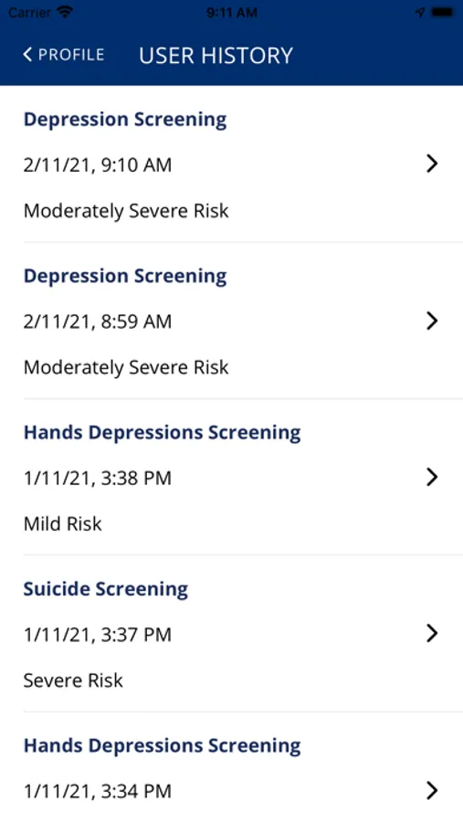 Previous mental health screenings on the app can be recalled and verified as needed. Progression of mental health status can also be monitored