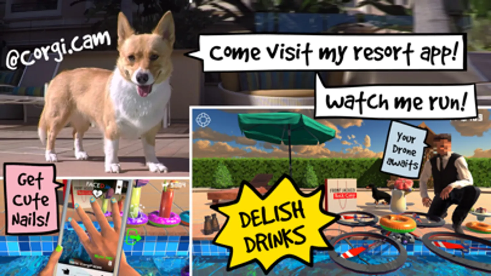 Front Jolly Back Corgi is a new kind of virtual spa experience augmented with brief video glimpses of a real live corgi puppy known as @corgi.cam