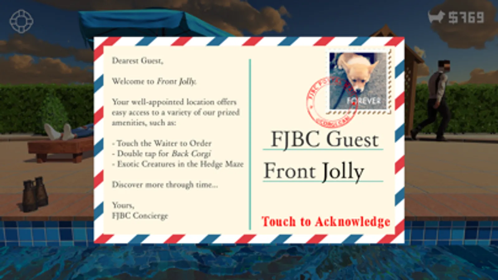 Experience all that our resort has to offer in Front Jolly -- from getting your nails done, observing exotic animals, dogboarders, tasting delicious edible cocktails, and simply summoning Manfred at your service and allowing for his sidekick drone deliver your drinks... and, more to come!