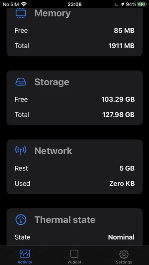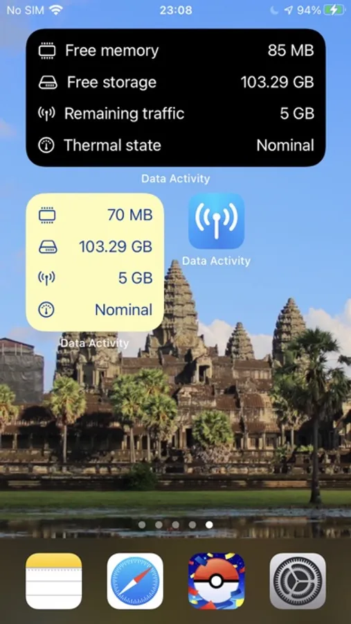 This is a widget application that allows you to check the amount of communication and memory usage on your home screen.